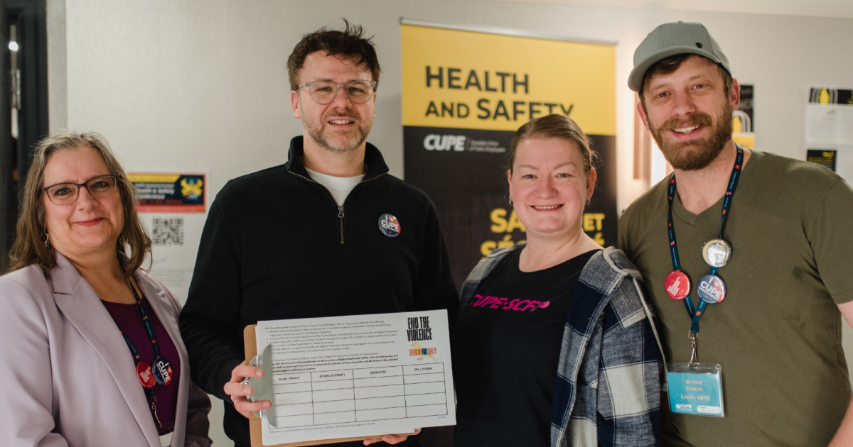 CUPE Saskatchewan is urging the Government of Saskatchewan to immediately partner with workers and their unions to address violence, workplace hazards, and threats to the physical and psychological wellbeing of workers.