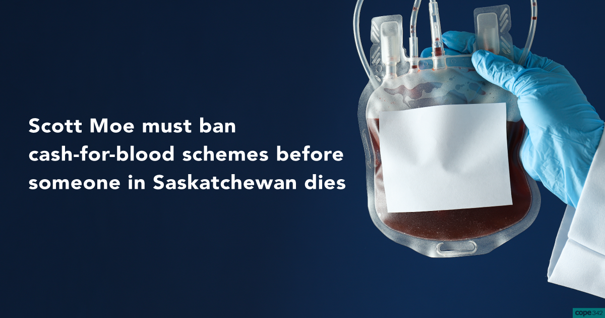 Scott Moe must ban cash-for-blood schemes before someone in Saskatchewan dies