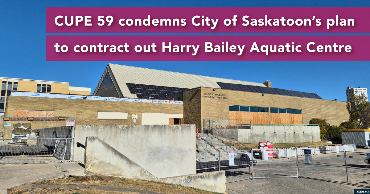 The Canadian Union of Public Employees (CUPE) is condemning the City of Saskatoon’s plan to transfer control of the Harry Bailey Aquatic Centre to a third-party group following renovations.