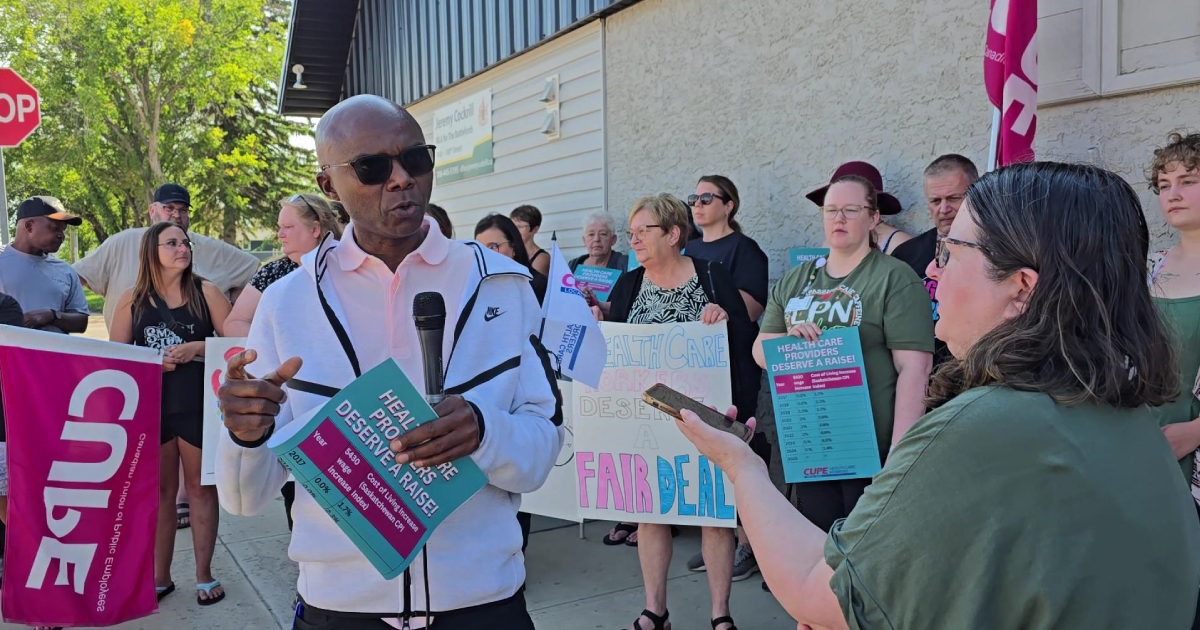 Health care workers from CUPE 5430 gathered outside the office of the Minister of Health in North Battleford today, holding a rally and press conference to raise urgent concerns about their working conditions.