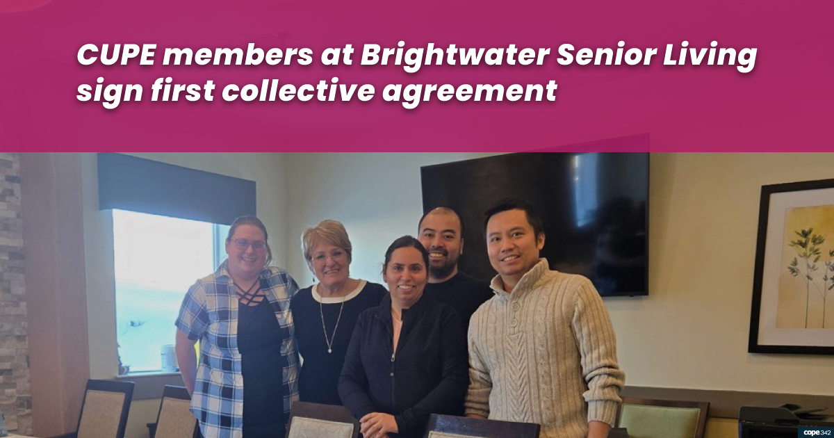 CUPE members at Brightwater Senior Living sign first collective agreement