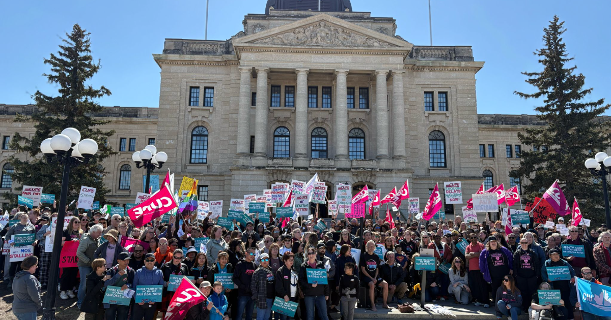 Hundreds of CUPE 5430 health care workers and supporters gathered at the Saskatchewan Legislature today to demand fair wages and respect for the frontline workers who keep the province’s health care system running.